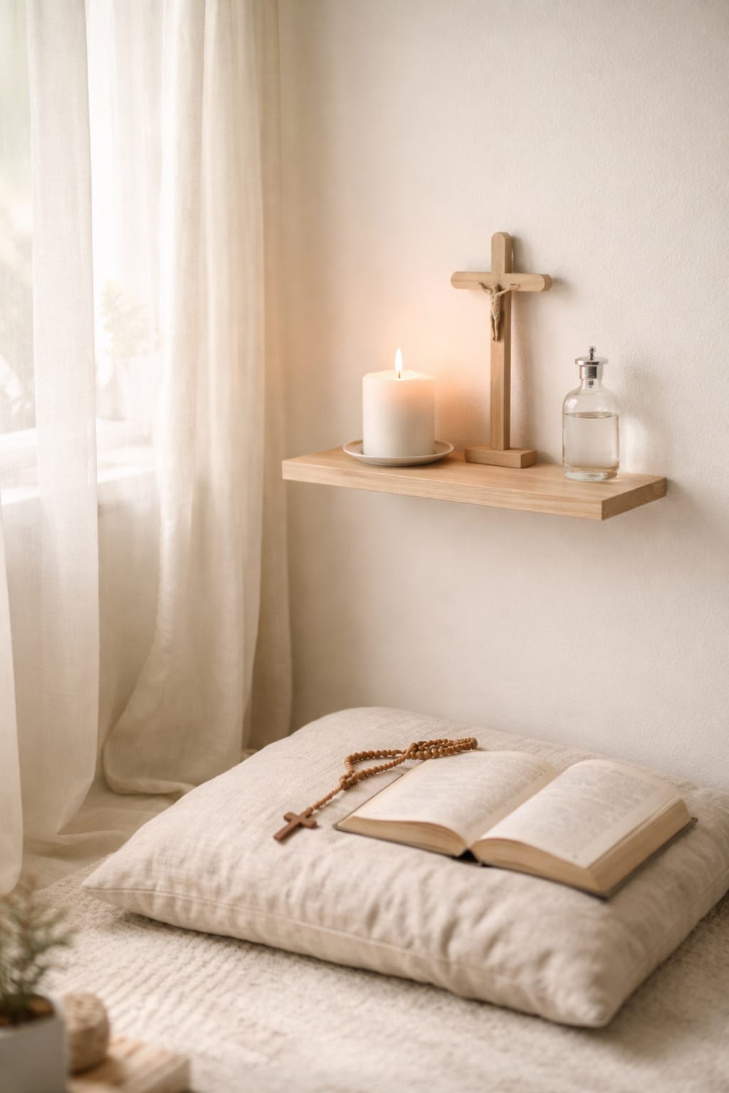 Même un petit espace peut devenir un coin de prière accueillant et lumineux.